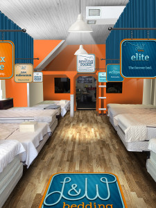 Another client, L&W Bedding required a brand refresh which offered a unique challenge to the TAG team. L&W Bedding makes high-quality mattresses which are all made locally right here in the Quad Cities. The owner of L&W Bedding, John Wheatley, is such a part of his business that you often can find him sitting behind a sewing machine, stitching together the next mattress. Their existing brand identity did not communicate the hand-crafted and high-quality approach to mattress making that they offer. TAG’s approach was to redesign their logo, creating a graphic with a stitched look that is as unique as the business, but also redesigning the store’s interior and exterior signs to reflect the uniqueness of the business. The signage was created to help guide customers into and through the store, attention-grabbing floor graphics and delivery vehicle wraps. TAG’s recommendations were well received, and the in-store experience became a whole new environment. All the elements came together, forming a cohesive visual language and brand identity that consumers were able to retain with ease.